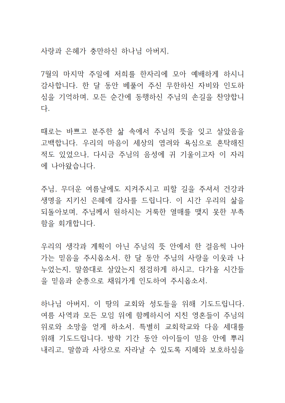 7월 마지막 주일 대표기도문 (hwp, pdf)