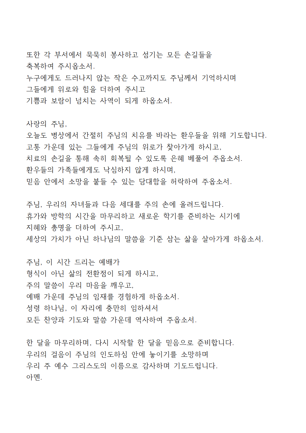 이번 글에서는 8월 다섯째주일 대표기도문을 안내해 드리겠습니다.