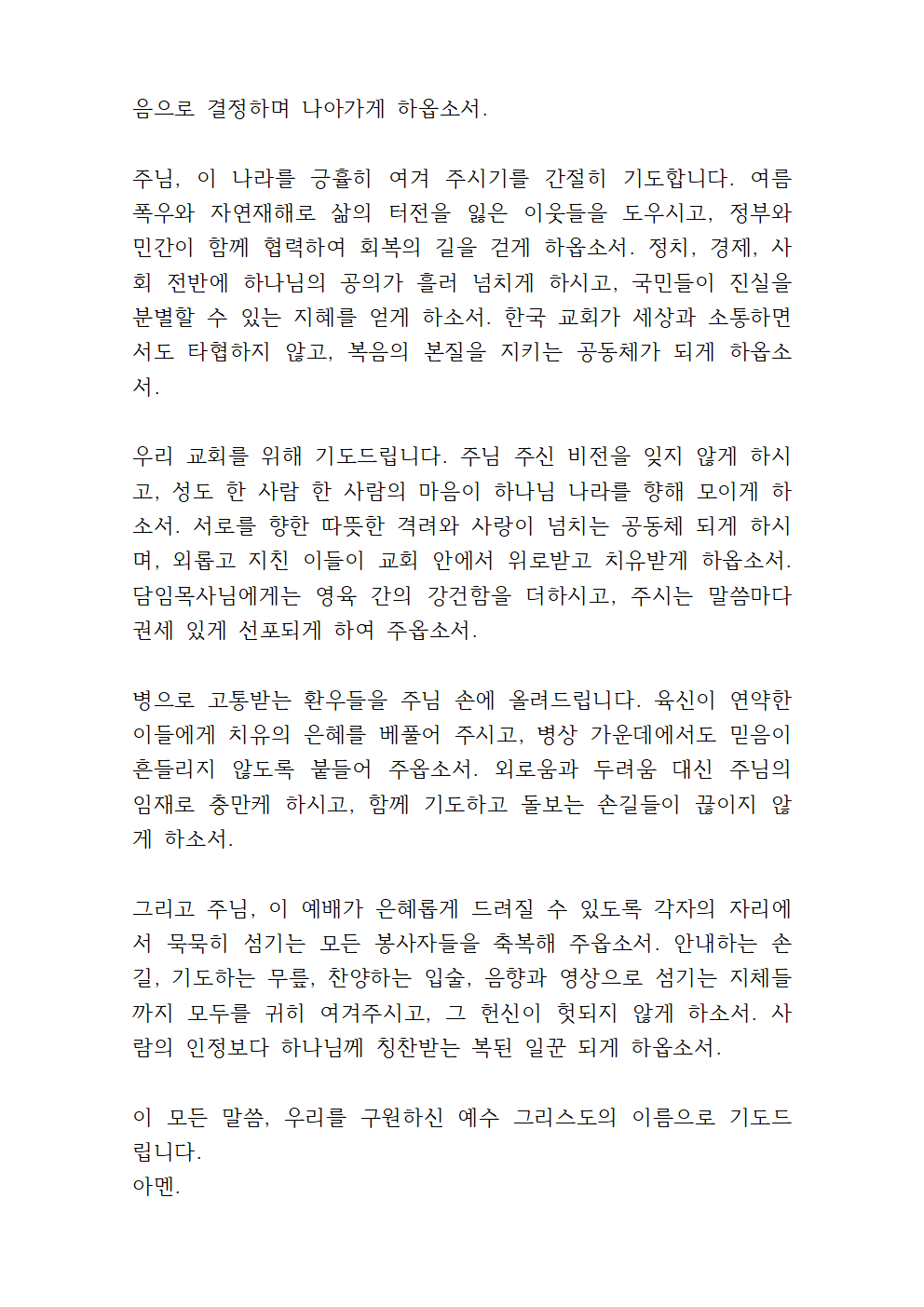 이번 글에서는 8월 셋째주일낮예배 대표기도문을 안내해 드리겠습니다.