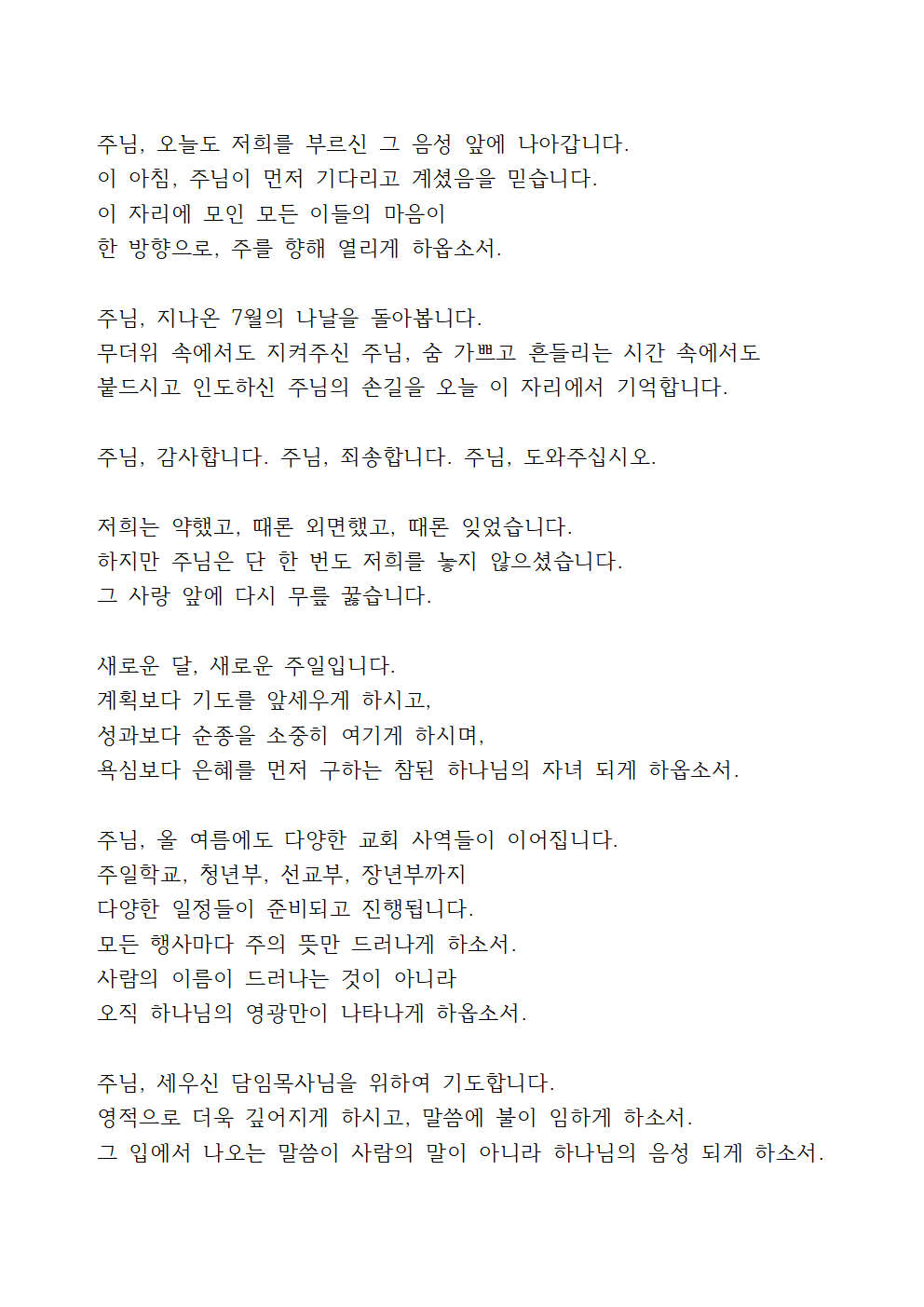 이번 글에서는 8월 첫주일 대표기도문을 안내해 드리겠습니다.