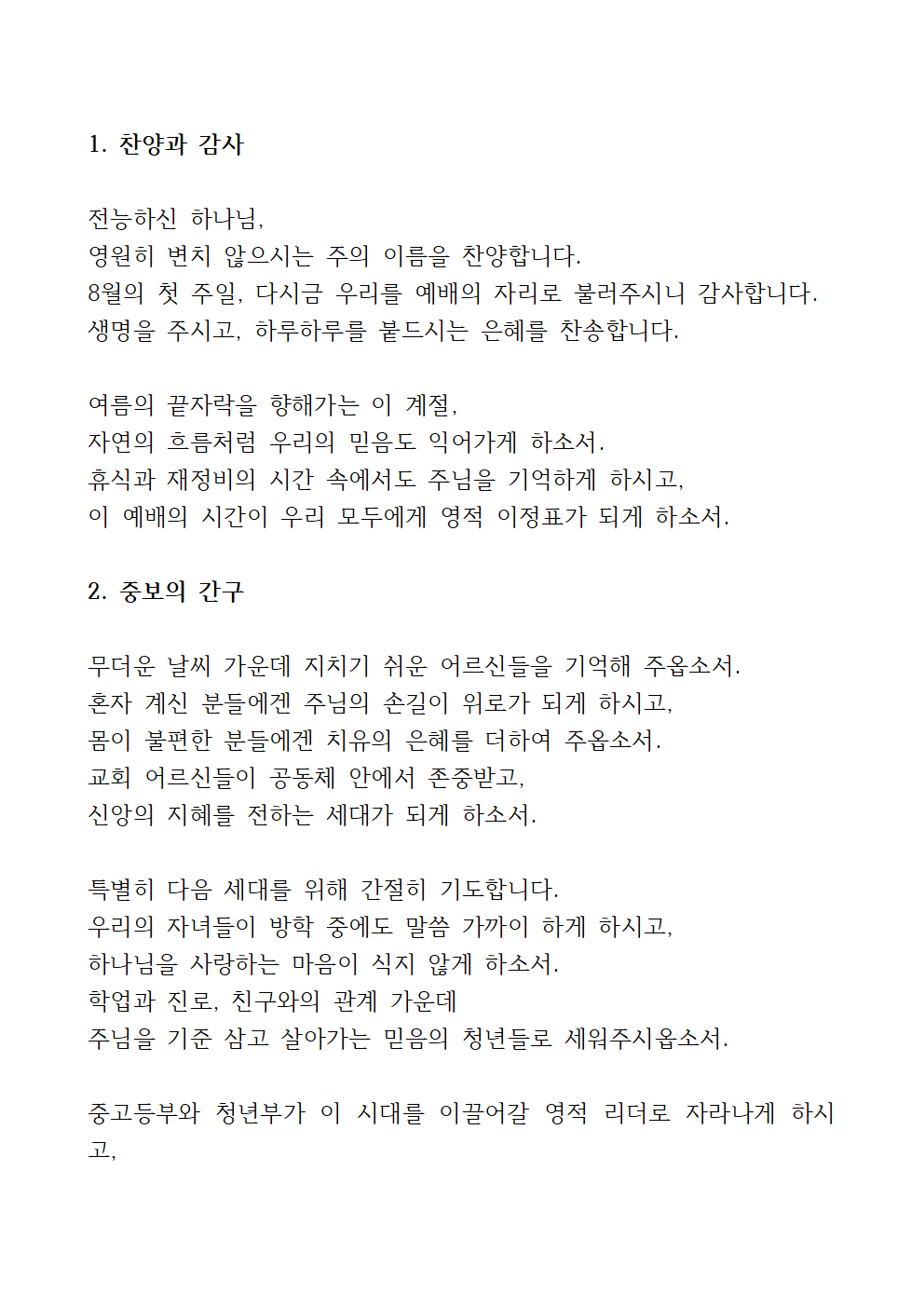 8월 1주 대표기도문 (첨부파일)